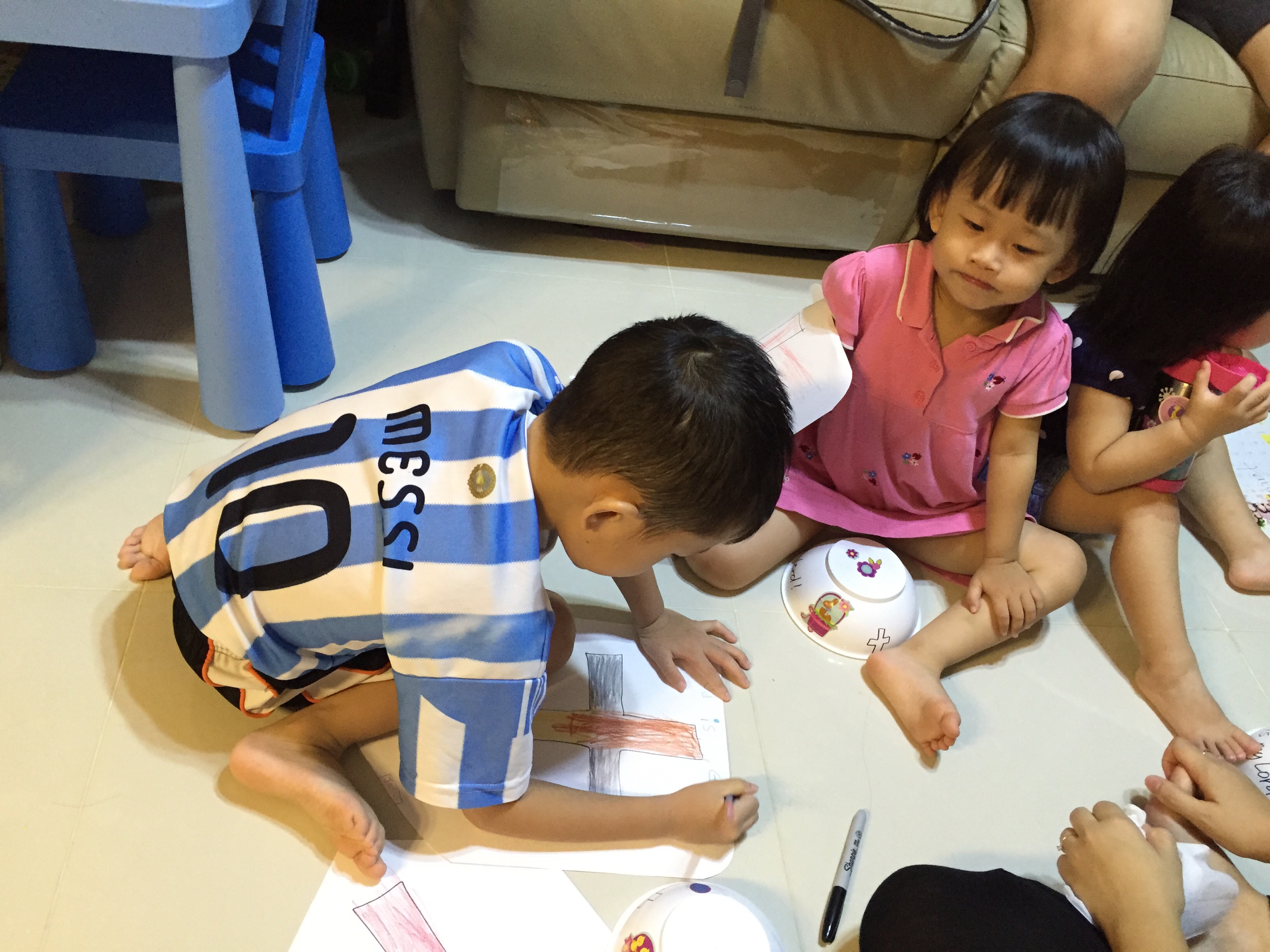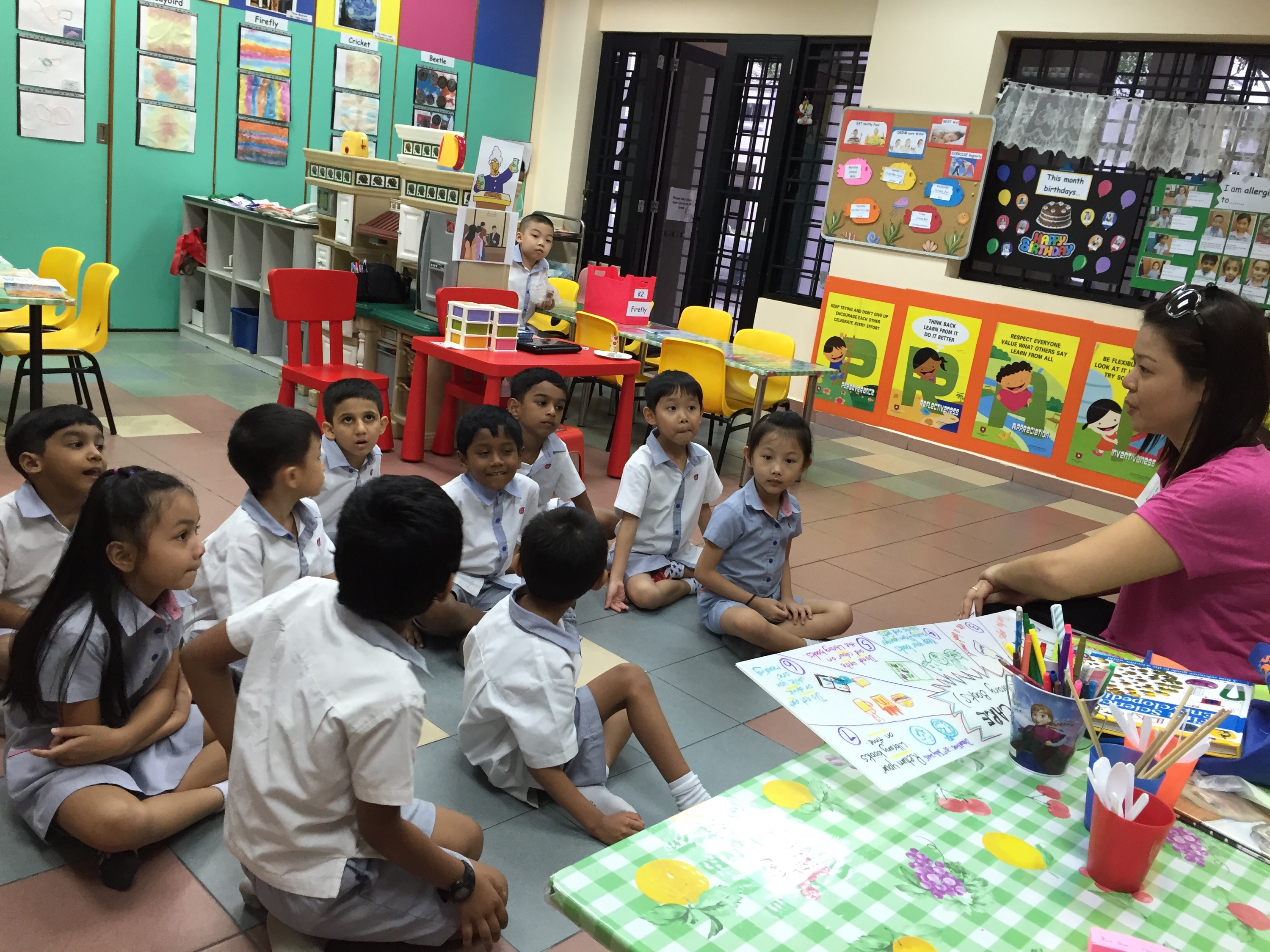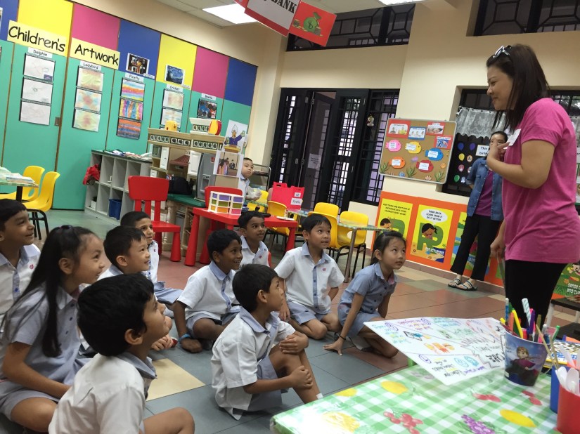 Q&A time! The kids were very enthusiastic in answering questions. Everyone has a chance & all of them have gotten their “reward” including Emmanuel. Mrs Eio tried to reinforce their good behavior by reminding them of the “virtue flower” practice from their form teacher.