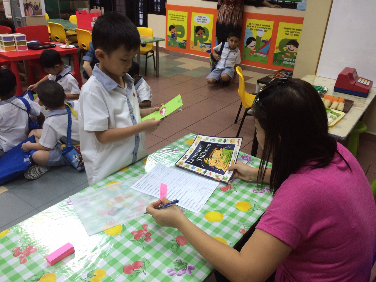 As a librarian, Mrs Eio issued out the books to the children. At the end of this “lesson”, she reminded them of the due date & thank the children for a wonderful time together. Thanks to Mrs Eio “PA” (her sister for joining her & taking photos.)