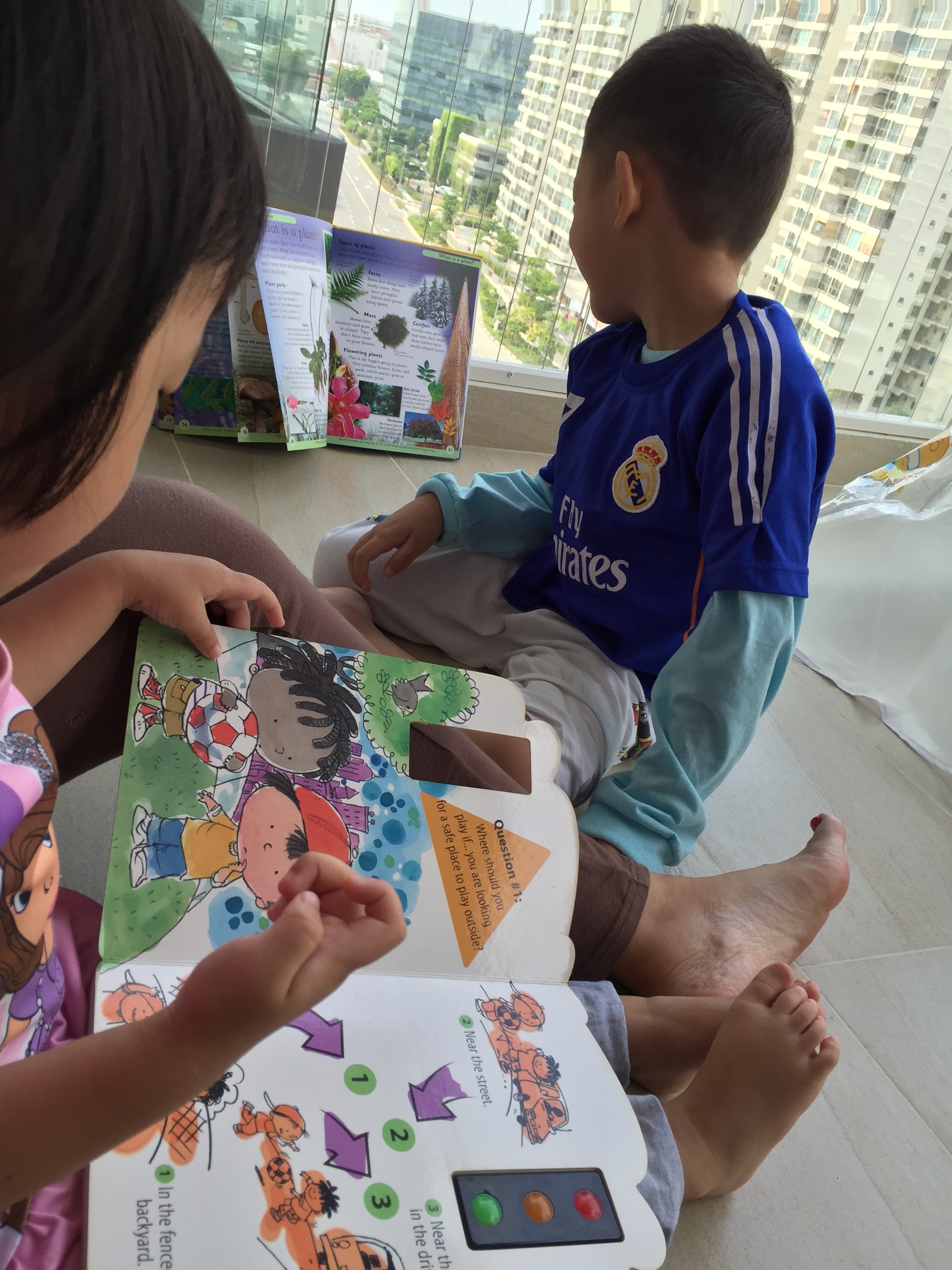 Of course, not forgetting to tell the kids plants need air, good, water & sunlight & what’s photosynthesis etc… (as if they can fully understand the process.. Haha. Nevertheless, no harm sharing with them. ) Just remembered that Mrs Eio used to be a relief secondary Science teacher for 6 months after her A levels. The thing about planting with Eio kids is that they’ll check on the plants. So the next day, Em dug out his encyclopedia, put it beside the plant & started telling me about what’s writen in it. As you can see after awhile, El is totally not interested with what he’s talking about. Lol.