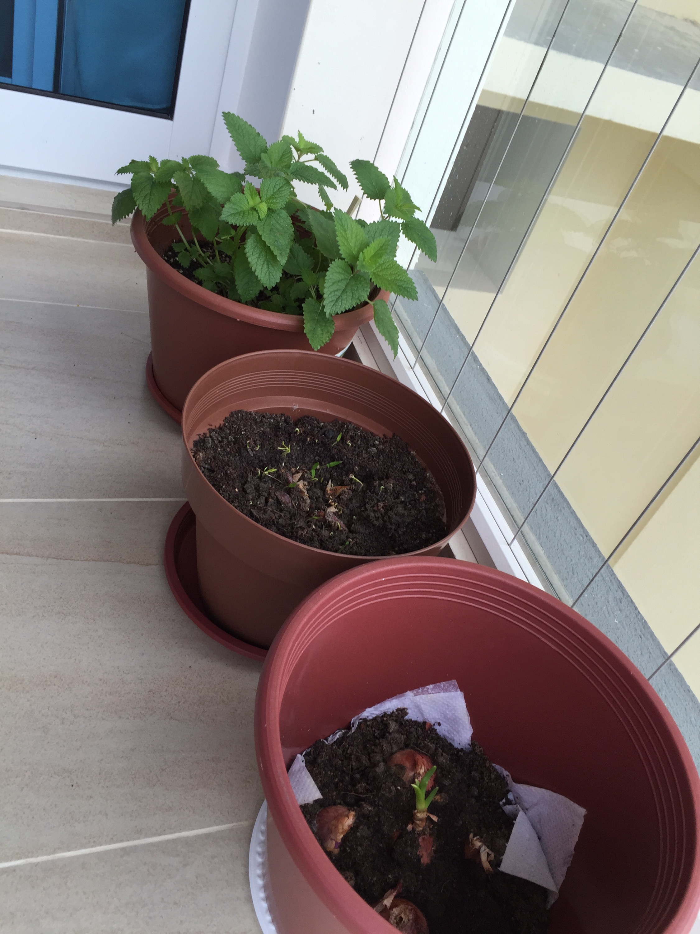 Since we have a front balcony at our new place, let’s make good use of it. Finally Mrs Eio get started with planting. 2 weeks ago, we started planting Lemon balm. After reading that it’s an “aggressive” plant. We decided that it’ll have a pot for itself so that it doesn’t “engulf” other plants.
