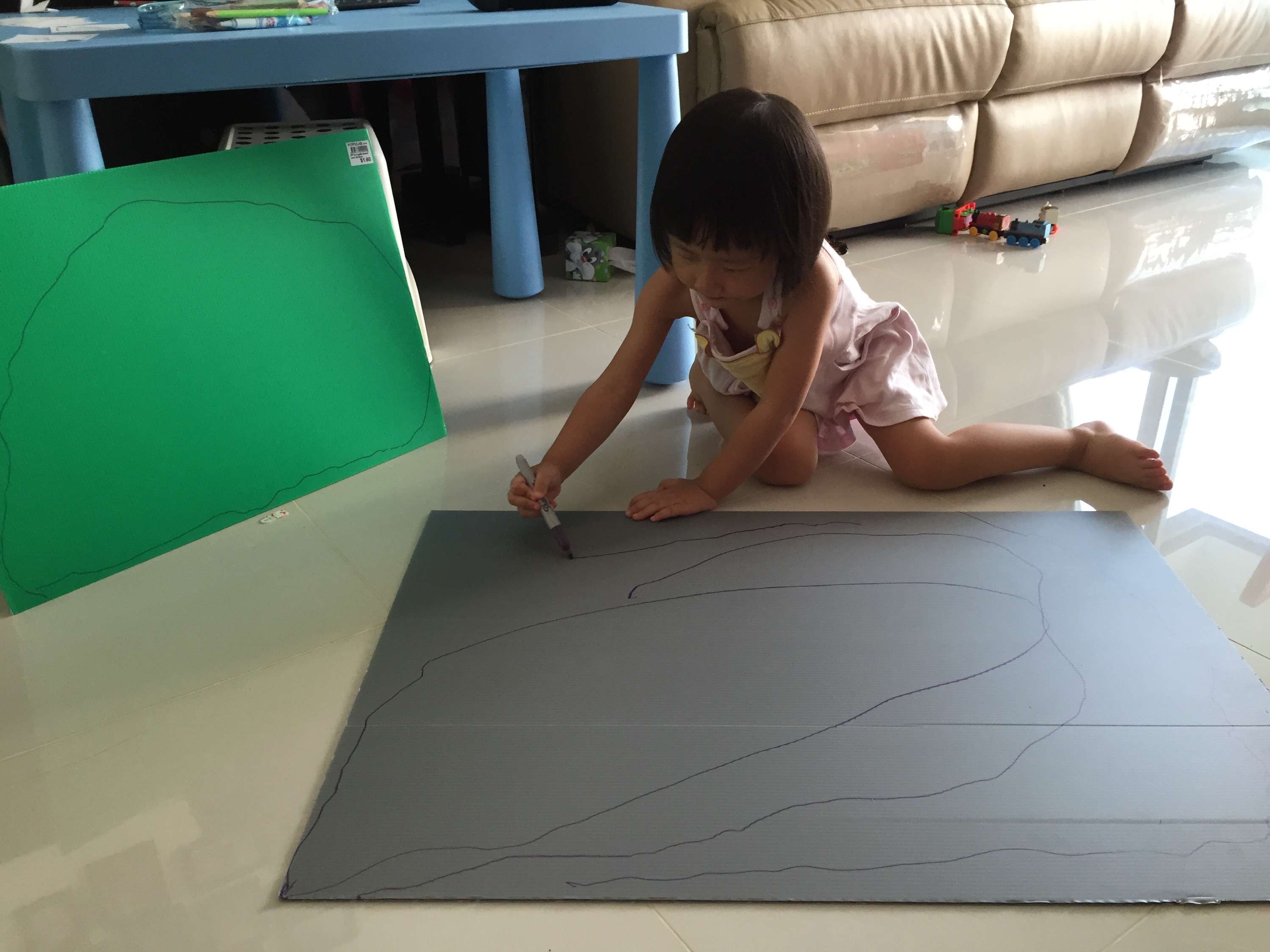 El drew on the Rock on wrong board so she started crying. Ops…
