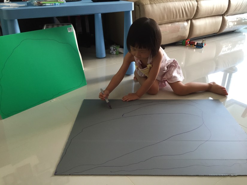The plastic corrugated boards had been sitting at a corners for 2 days. There’s a discount sale at Tampines Mall Popular store when Mrs Eio was there 2 days ago so she bought all the stationeries she needs for this project. She has been contemplating if she should buy some online stickers instead, but she simply can’t suppress the urge to DIY with the Eio Kids. Eio kids have been asking when they can start making their “thanksgiving tree” & the “rock of salvation”. Mrs Eio promised them today is the DAY!