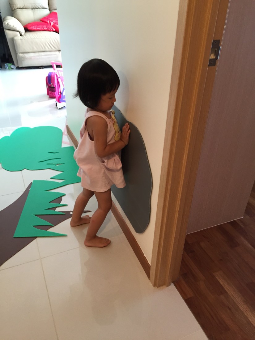 Living in a democratic country, we “voted” to decide how we should paste the rock. Mrs Eio thought she should display El’s drawing on the rock but after discussing with Eio kids, we garner 2.5 votes out of 3 voters & “pass the motion” display the other side of the rock so that we can write words on it. (El is undecided so hers is the 0.5 vote. Lol)