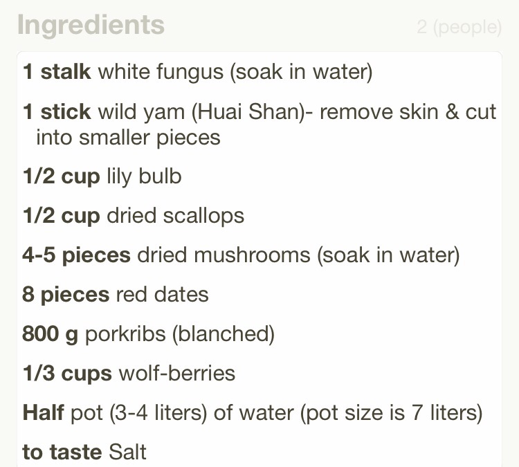 Here’s the recipe for wild yam & white fungus soup. Mrs Eio posted this recipe on another platform. So she’ll just take screemshots of what she has posted. 😊