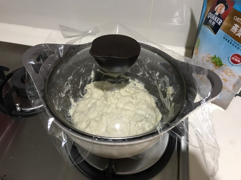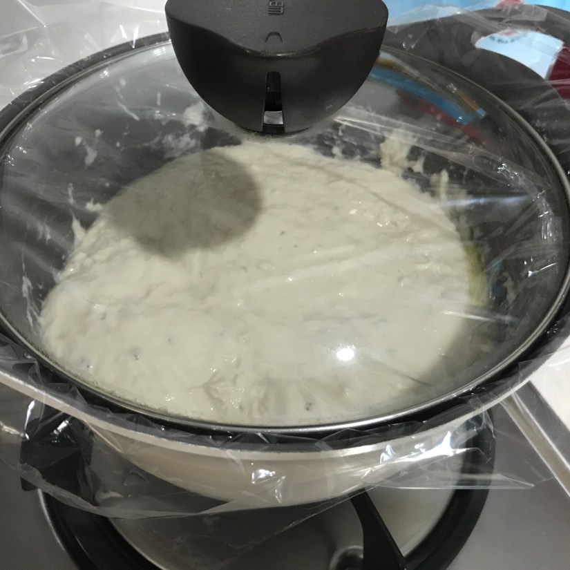 Next day around 1pm, the dough had doubled in size and there’s air bubbles.