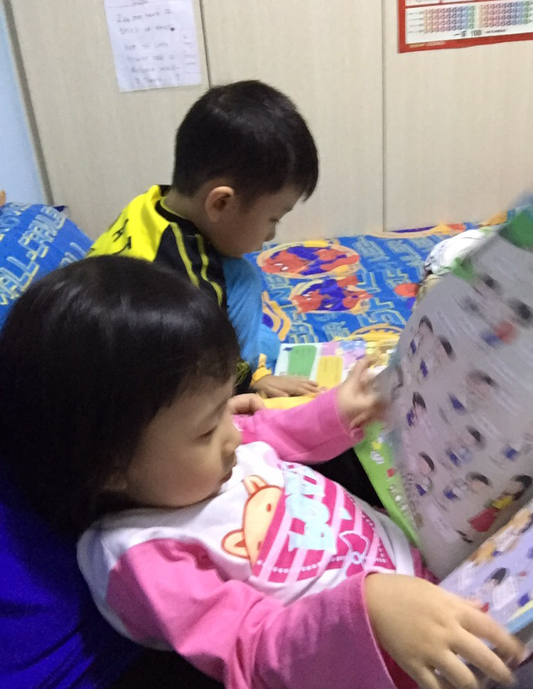 Mrs Eio thinks it starts with the parents reading with the kids. Then the older child picks up reading habits & read to the younger sibling. Frankly, Mrs Eio never once ask Em to read to El or do flash cards with her. It’s his own initiatives. Thankful…🙌🏻