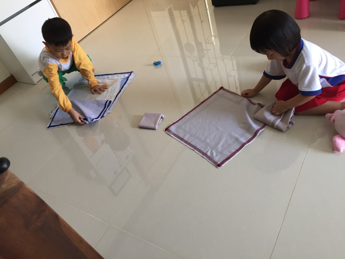 Some days Eio kids helps to fold Mr Eio’s handkerchiefs.