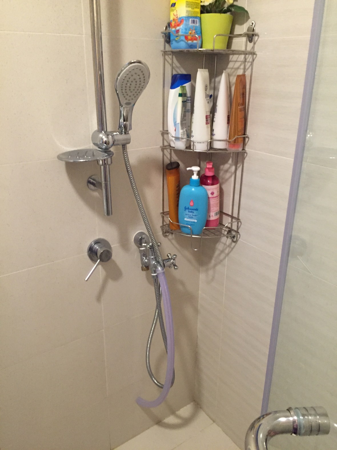 6) Lower the shower head & place the children’s soup on a lower shelf so that they can bathe on their own.