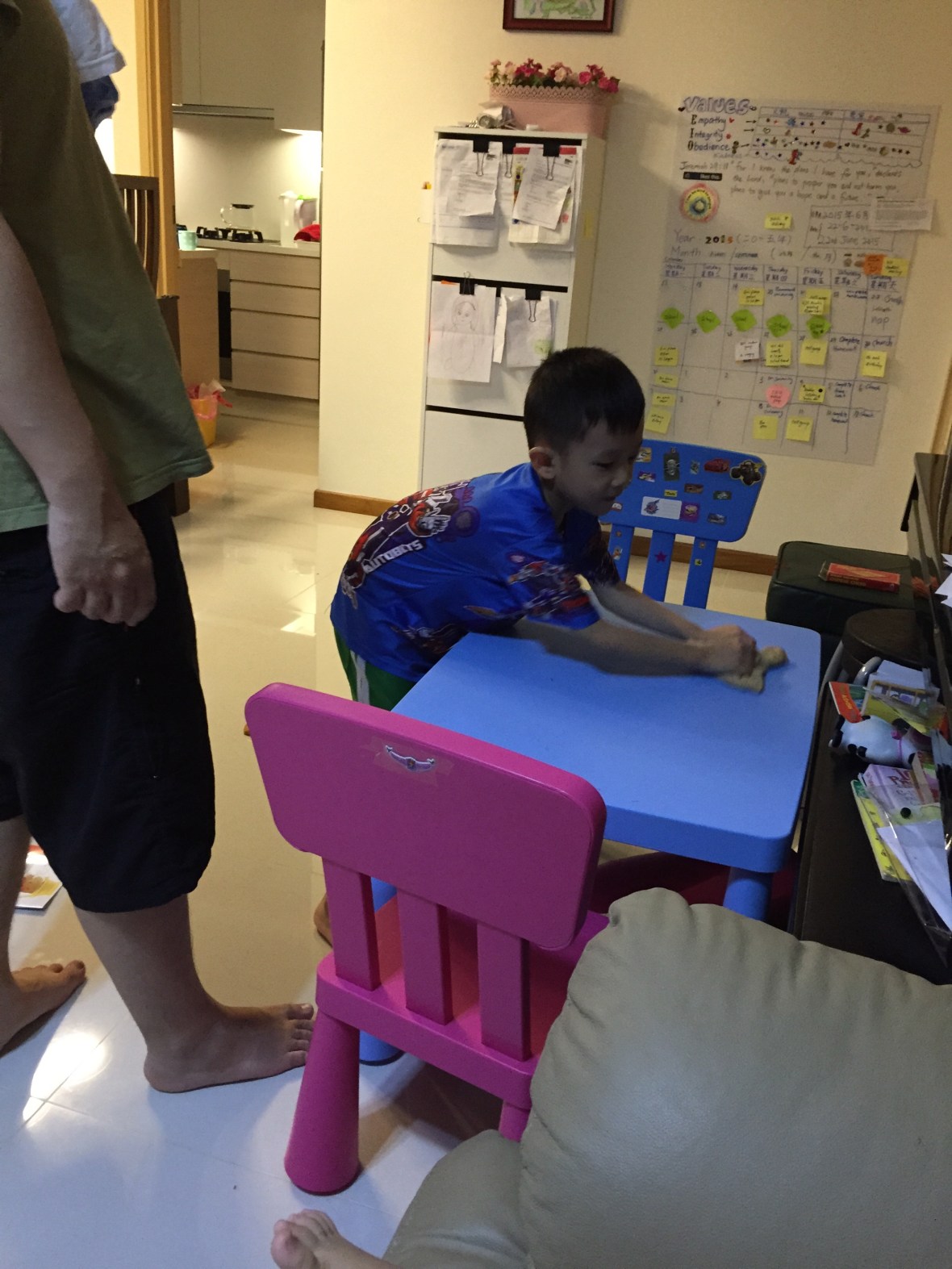 Others: Mrs Eio has tried getting the Eio kids to prepare their meals, lay the tables, clean the table after meals, vacuum & clean the floor etc etc but that’s not everyday for kids 2-6 years old. Well… They are still kids right? Lol.