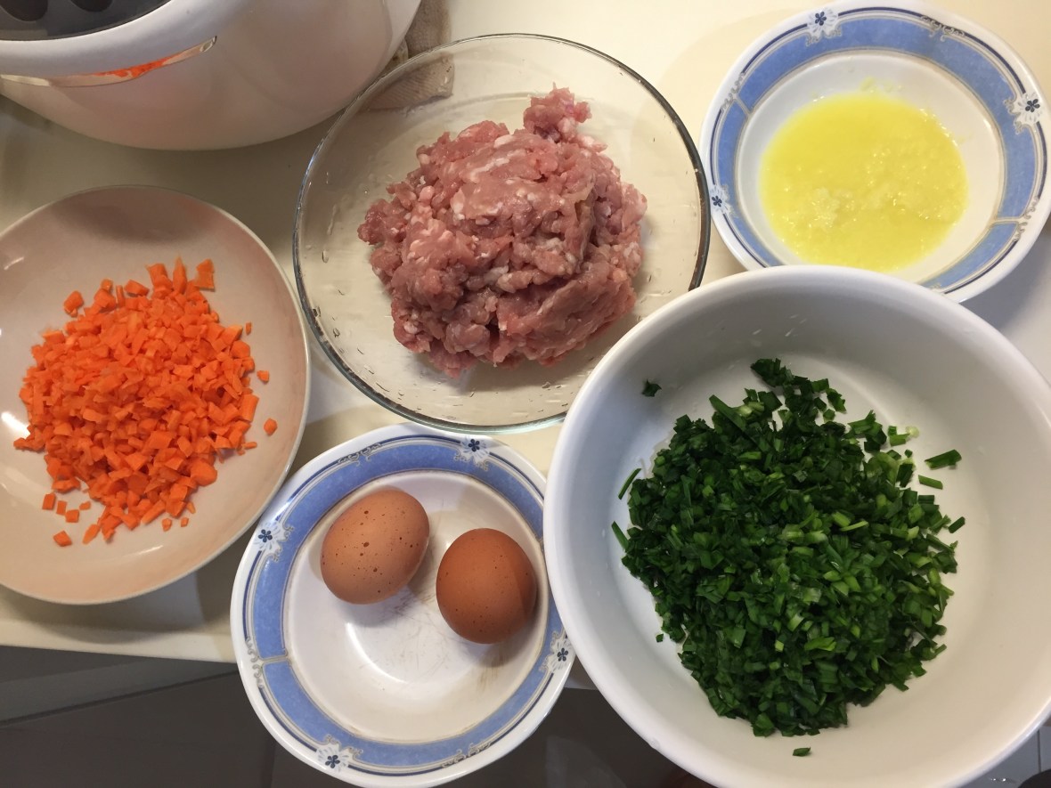 To make her preparation worthwhile, Mrs Eio also add the carrot & celery (bigger cut) into her pot of corn soup for dinner. There’s another container of marinated pork with chopped carrots to be frozen for another meal. Probably to cook with mushrooms or beancurd. Here’s the dumpling fillings. Mrs Eio will freeze the dumplings for another meal. 🙂