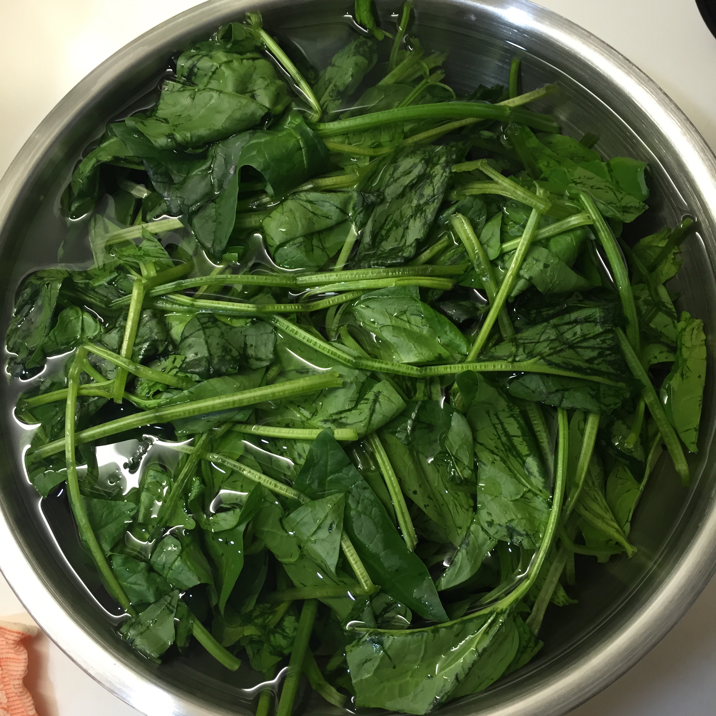 • 8 ounces spinach (Mrs Eio washed the spinach clean before blanching & rinsing.)