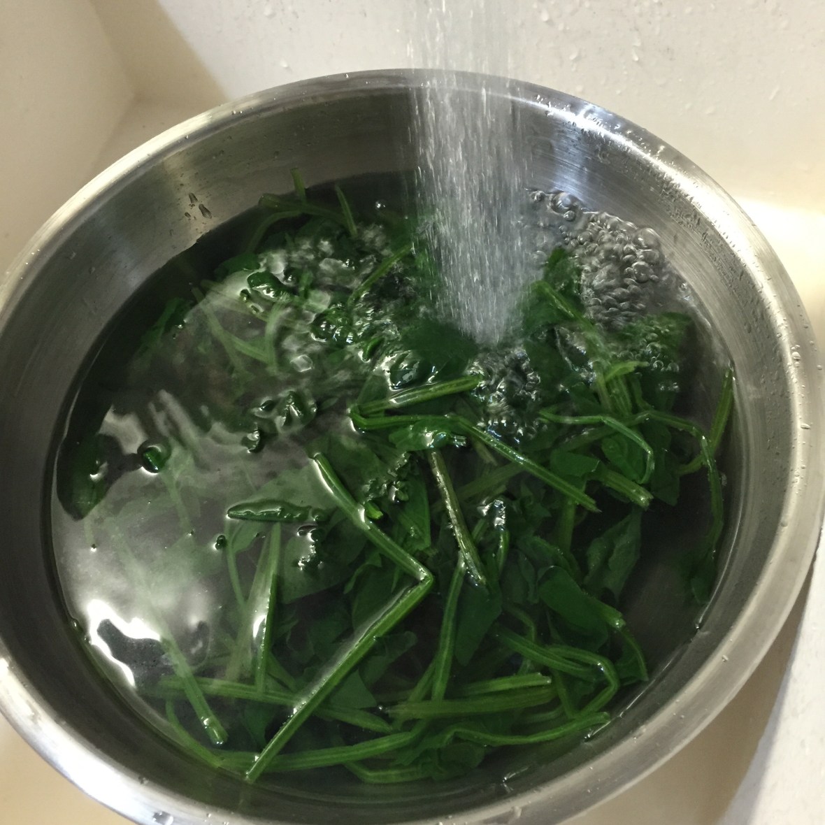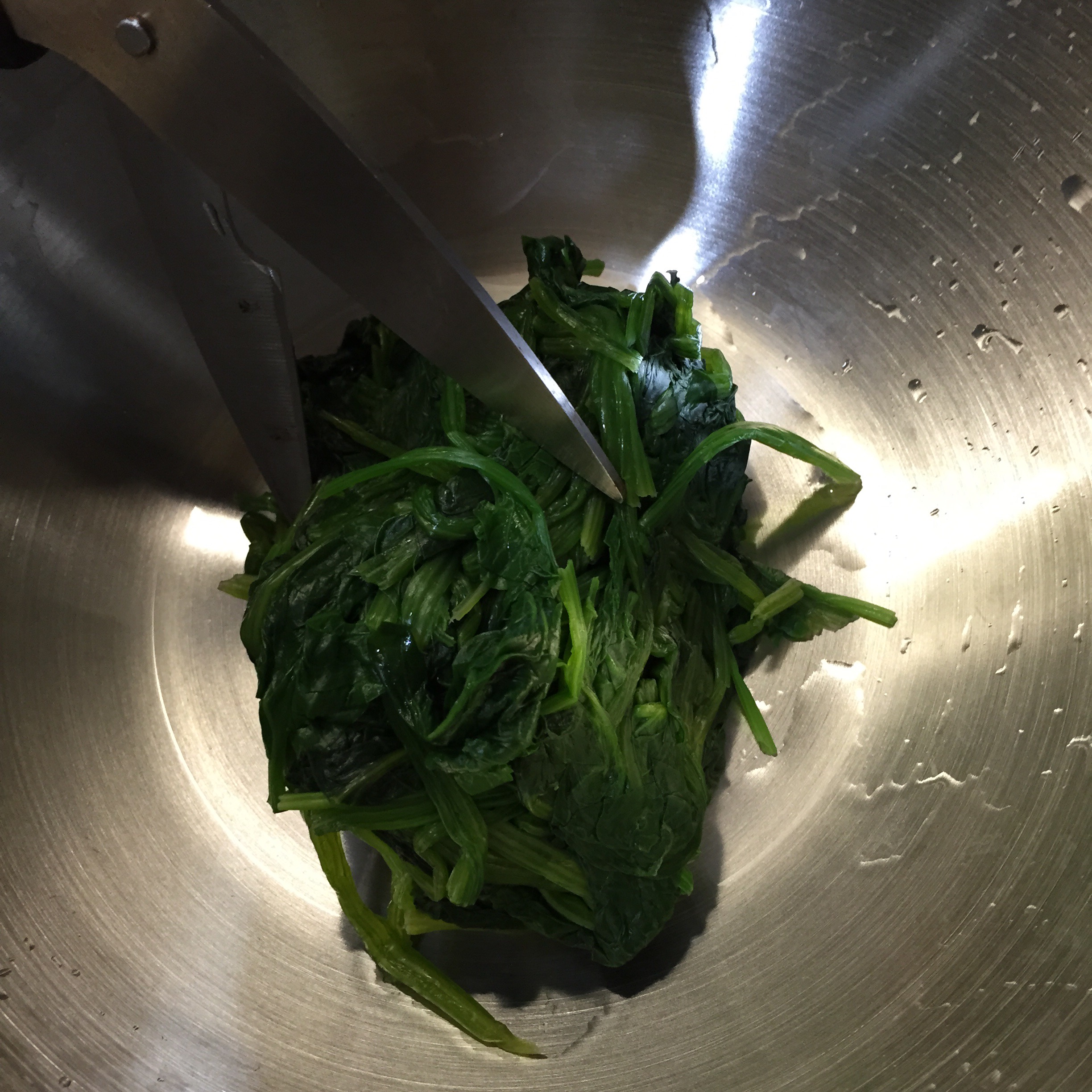 Rinse & cool the spinach with cool water. Squeeze out the excess water.