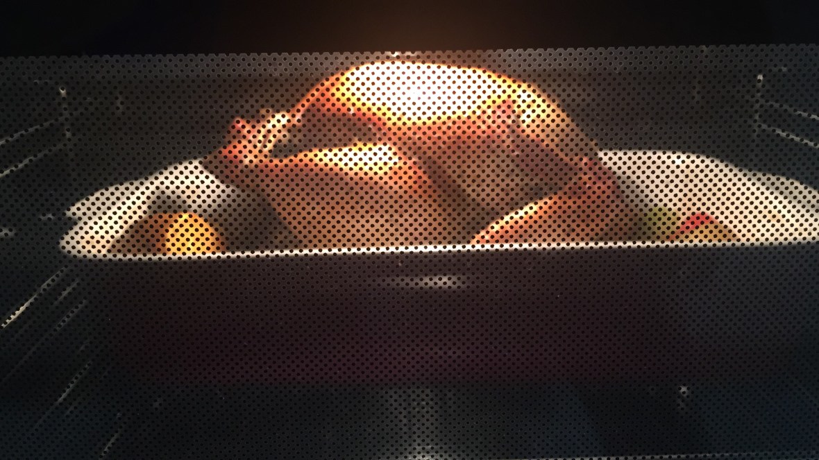 10. Sprinkle some water on the vegetables & chicken every half & hour (Twice for the entire 1.5 hour) – to prevent overheating & drying up.