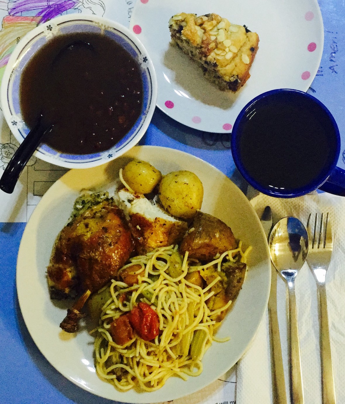 While waiting for the chicken & vegetable to be roasted in the oven,  you may prepare some pasta or spaghetti.