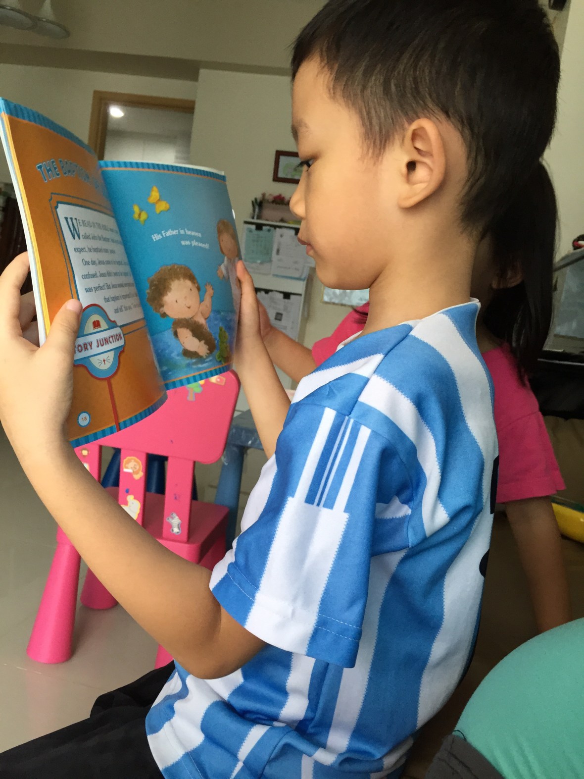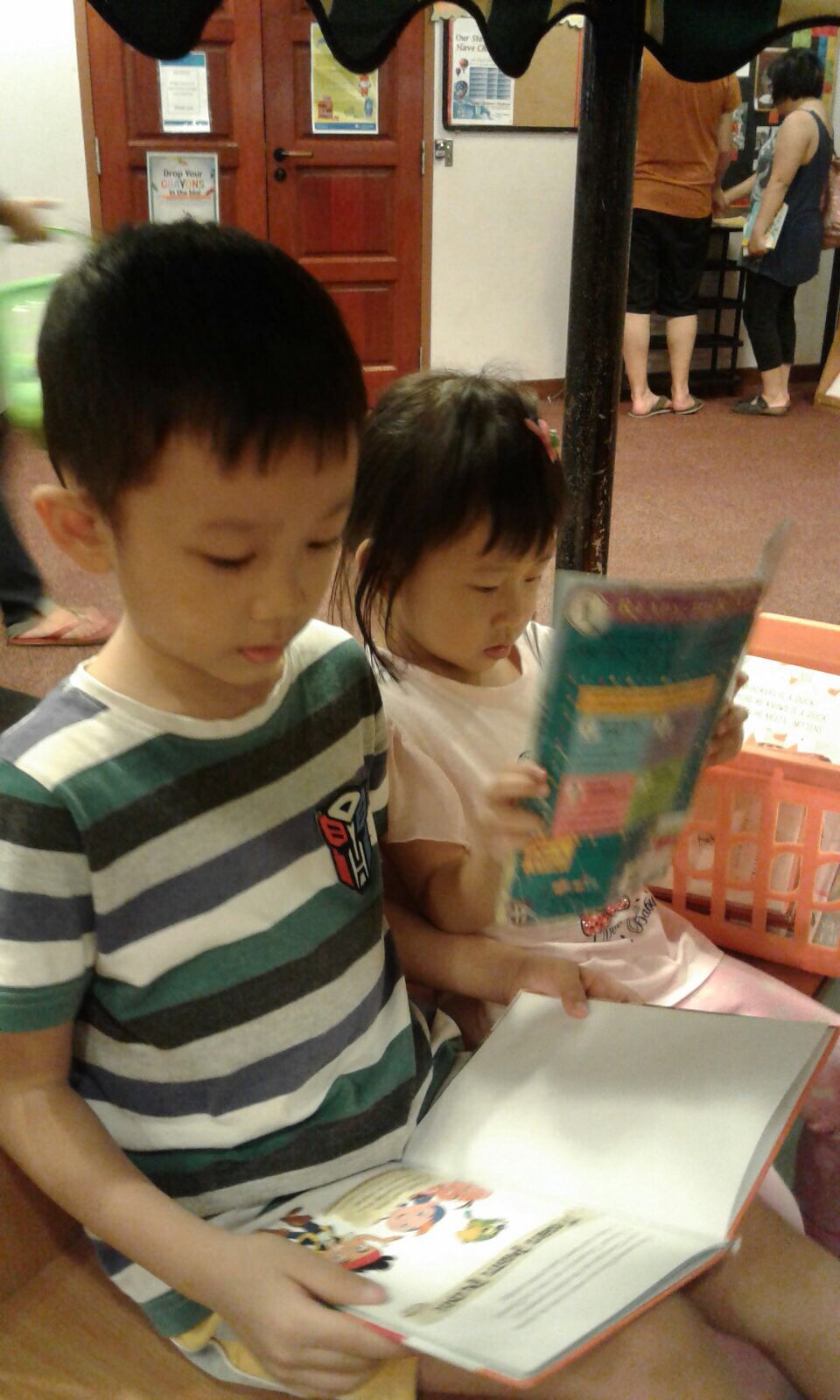 Mrs Eio thinks it starts with the parents reading with the kids. Then the older child picks up reading habits & read to the younger sibling. Frankly, Mrs Eio never once ask Em to read to El or do flash cards with her. It’s his own initiatives. Thankful…🙌🏻