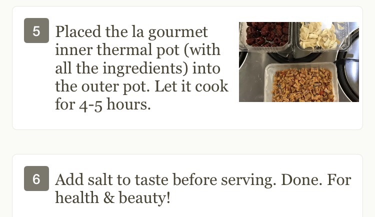 Pardon her for not having a photo of the “finished product”! It should thickens slightly (collagen!!!) as the wild yam & white fungus soften. Enjoy the soup!