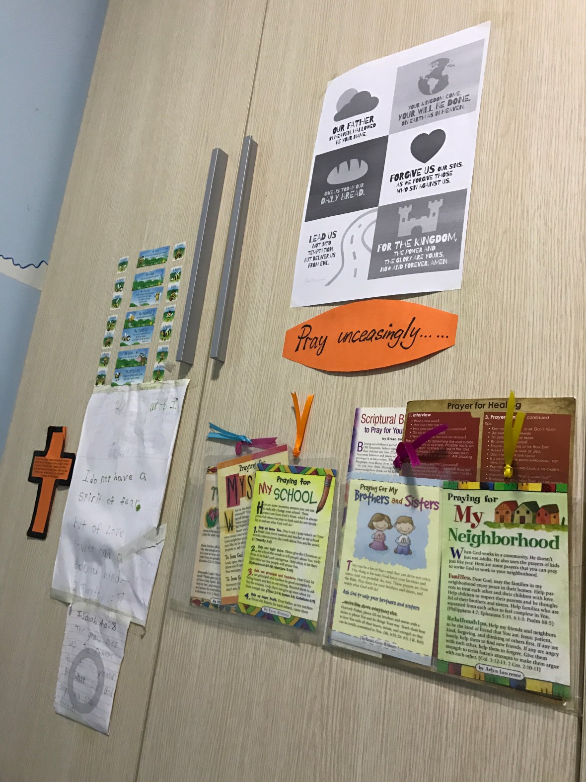This is a “prayer corner” (photo below) set up beside their bed. Not well “decorated” but serves its purpose. Ultimate aim to for them to “self-service” if they need prayer guides.